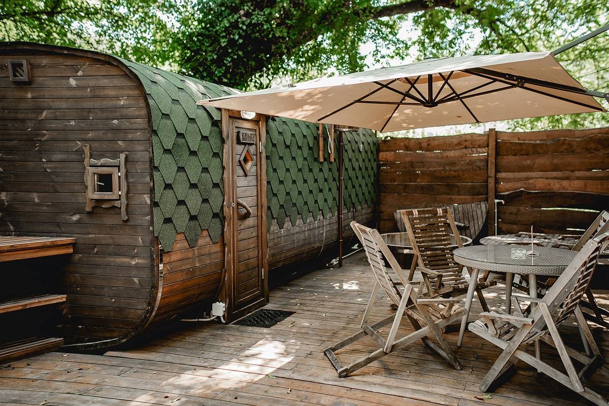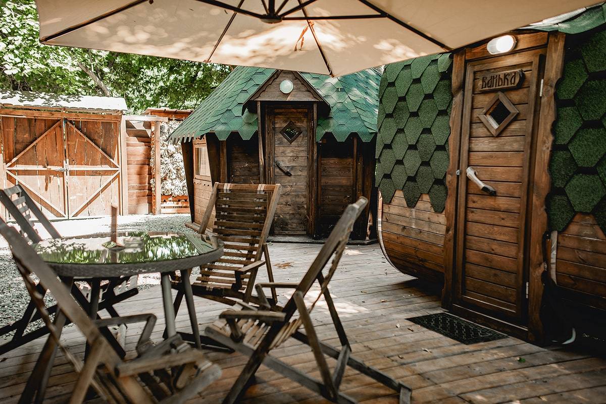 Заказать обратный звонокРусская баня на дровах с купелью и гриль-домиком